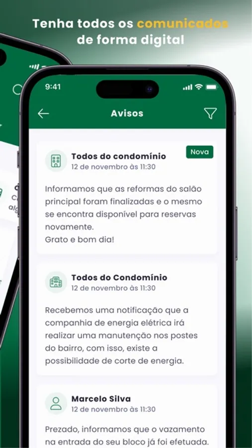 • AVISOS: Dê tchau aos avisos de papel pelo elevador! A comunicação entre todos do condomínio pode ser feita em tempo real, em um ambiente integrado e rápido.