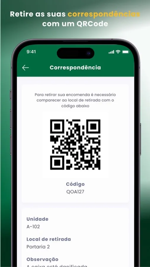 • CORRESPONDÊNCIAS: Ansioso pela entrega da encomenda que está para chegar? A equipe da portaria tira foto dos pacotes e o morador receberá um QRCode para fazer a retirada das encomendas.