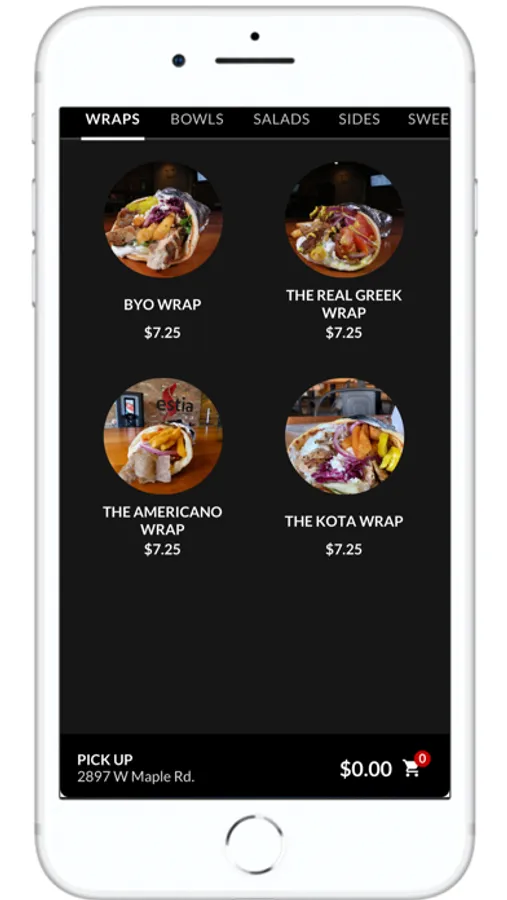 We get it, you are busy and you cannot wait in line. Get your Estia Greek Street Food fix on the fly with our Estia App. We love that you love our "good for you" Greek inspired food. We also understand that waiting in line can be a hassle and that you have a million things to do. No worries. Customize your wraps, salads and gyro bowls on our app, pay online and we will prepare the food for you in a jiffy. Specify which location you would like to pick up from, come right in, say hello (or not), pick up your food from our "pick-up" shelves and off you go. Yup. It's that simple.
