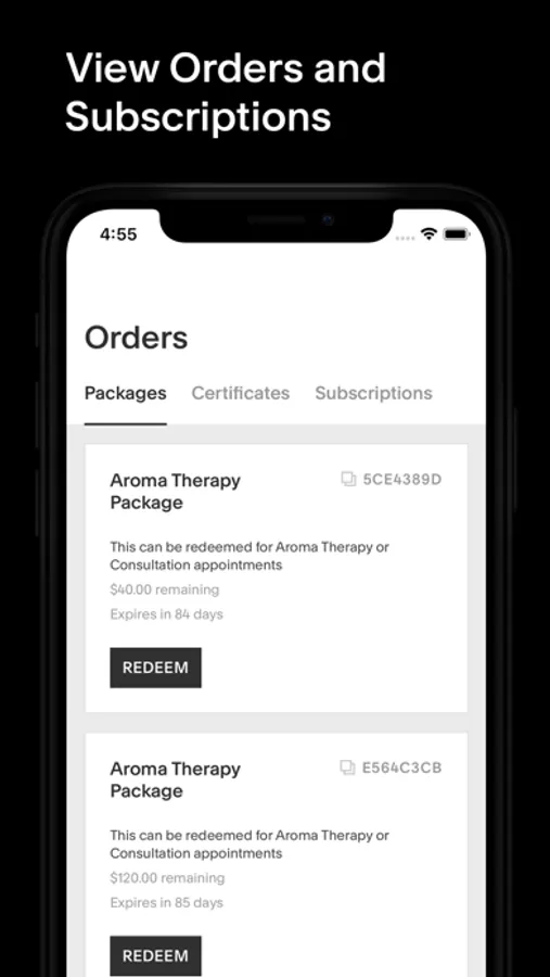 - Manage, redeem, and track your packages, gift certificates, and subscriptions with a few taps.