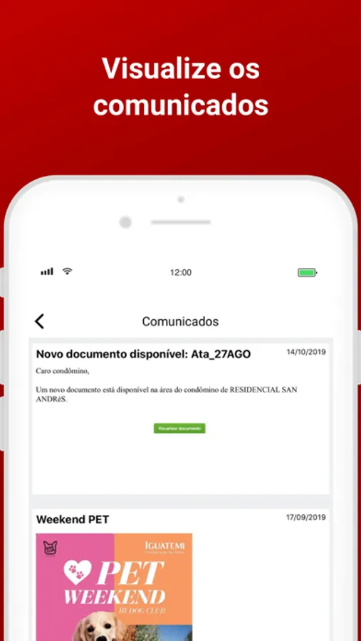 * Visualizar comunicados emitidos pela Delta Administração Condominial e pelo síndico de seu condomínio;