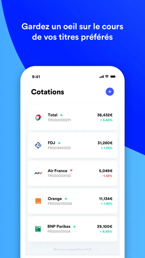Gérez et suivez votre portefeuille d'actions, et soyez alerté en temps réel de l'évolution des cours de vos actions favorites !