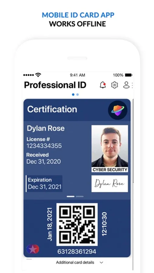 Professional ID App is a digital ID wallet used by professionals to store their digital license & certificate ID cards issued by the licensing and certification authority. In order to use this app and store your professional ID card on your mobile device, you must receive a digital ID card invitation email. If your authority is not registered with us and you would like to use this app, please have them contact us.