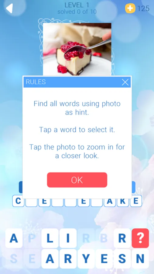 You need to find all the words in the list using the image as a clue. Tap the word and use some of the given letters to decipher the word. Also, some words have bonus tiles that will help you reveal letters in the other words of the puzzle. When all the words are found, the next level will be unlocked for more fun! Sit down with a nice sangria and your friends and try to find all the words while looking at amazing pictures!