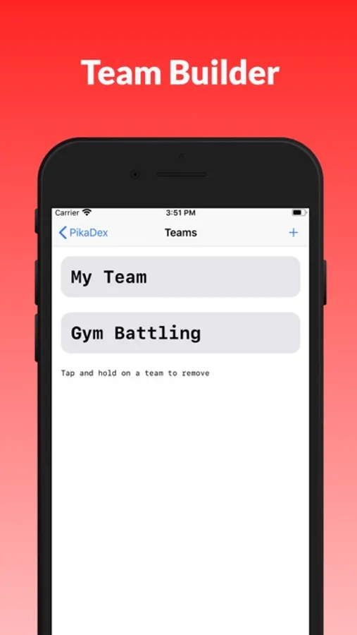 PikaDex comes with a built-in team builder from the initial release! Keep track of all your teams, specific to each game. Track your Pokémon's stats, moves, natures, held items, and more!