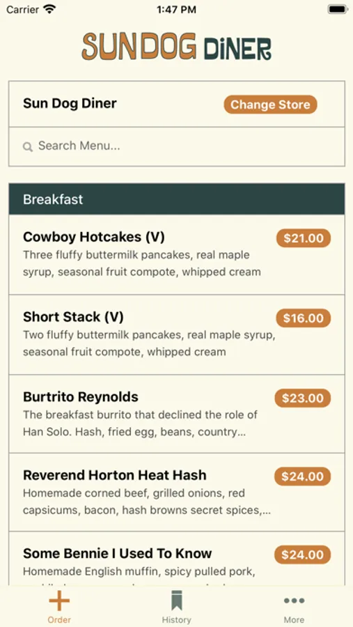 The Sun Dog Diner mobile app enables you to order and pay for your food from your iPhone as well as look after your loyalty rewards.