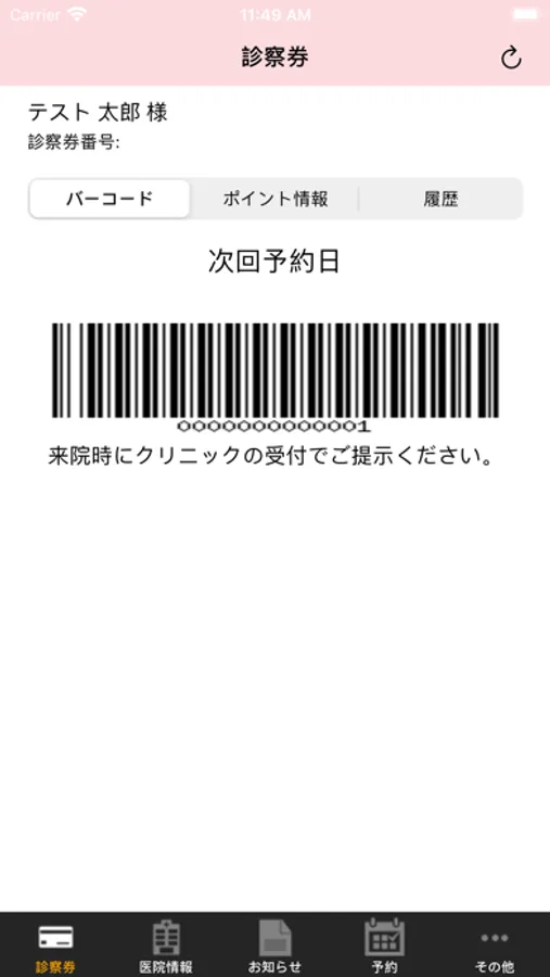 その場で予約、次回予約確認などカードレスな診察券としてご活用頂けます。