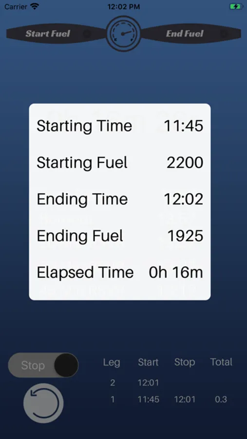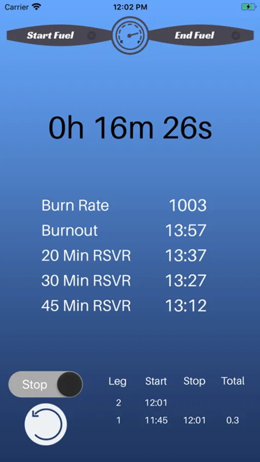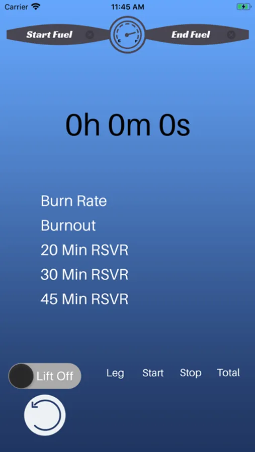 Start by entering your beginning fuel number. Then, press the triangle button to start the timer. Once you are ready to calculate your Burn Rate and Reserve times, enter the ending fuel number then hit the "=" button to see the results. If you forget to close out your fuel check, no worries, the app will send a notification to your device (iPad, iPhone, or Apple Watch) after 15 minutes of starting your fuel check.