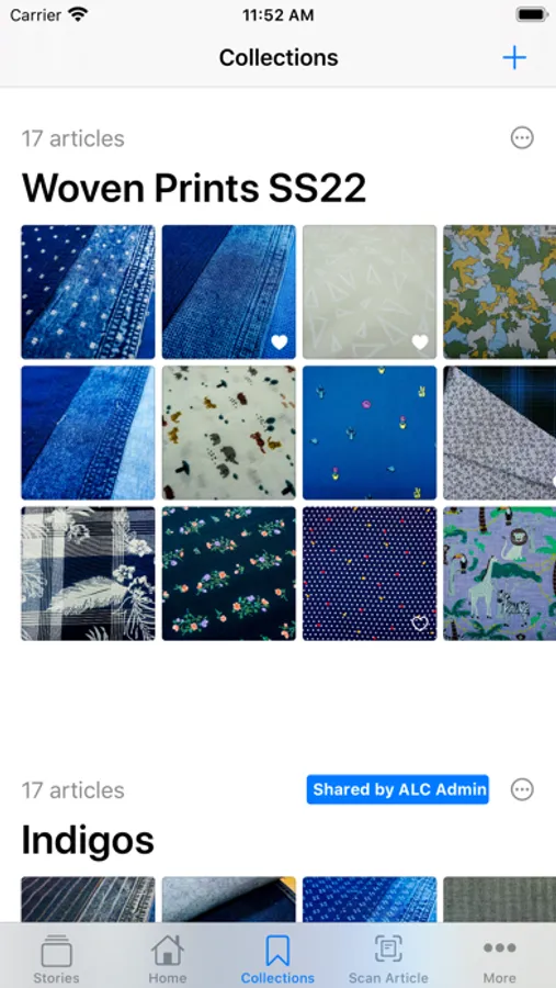 You can create your own collections of the fabric articles you like and share the collection across your Team or the Mill for them to have a look. Mill can arrange physical hangers accordingly.