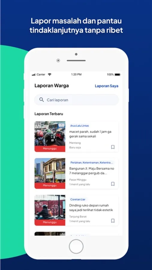Laporkan semua permasalahan non-darurat di Jakarta dan pantau perkembangan penyelesaiannya langsung dari gawai kamu.