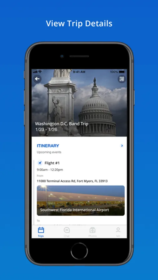 Chaperone allows you to be aware of all your upcoming travel itineraries and to connect with other members of your group