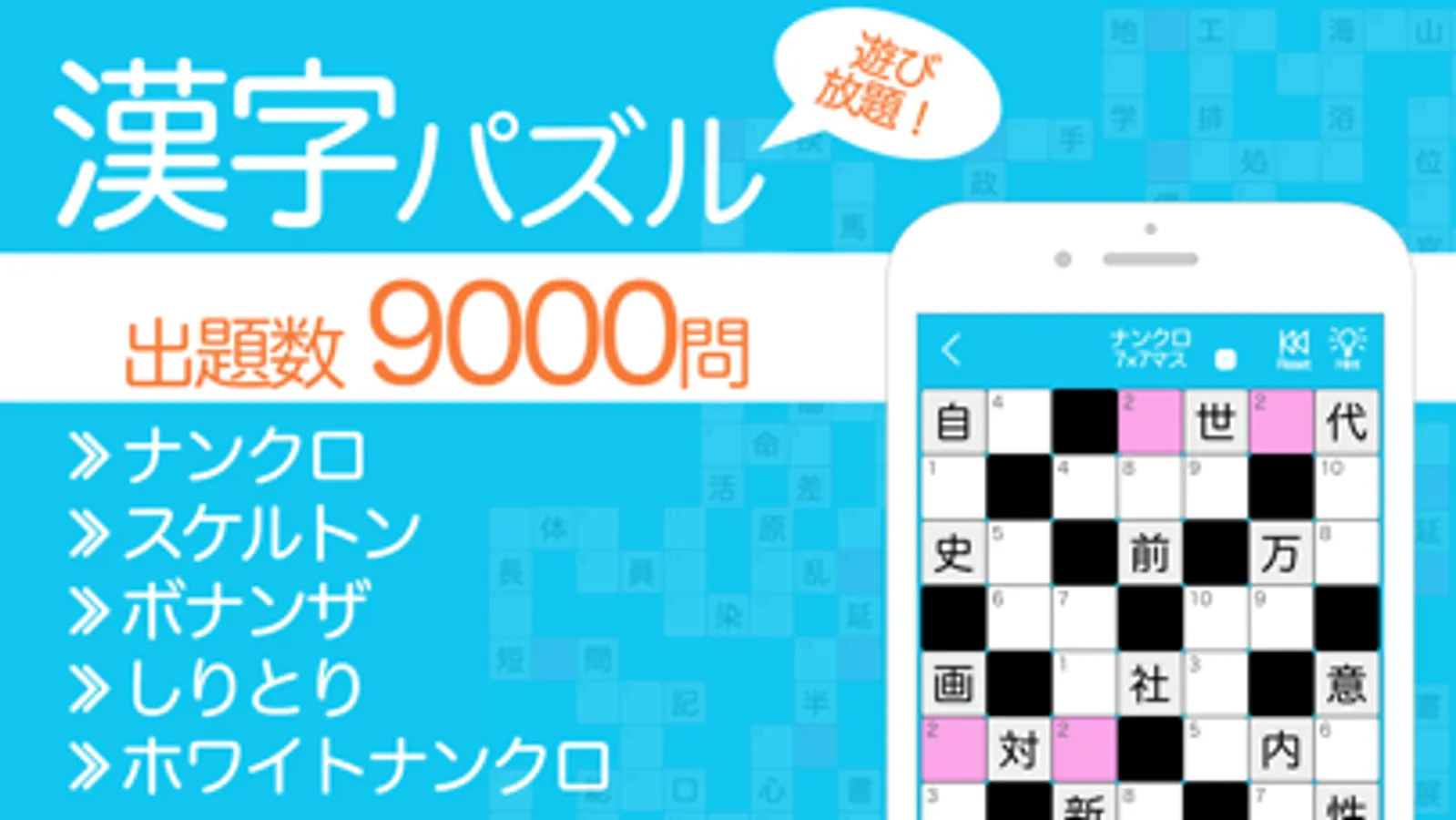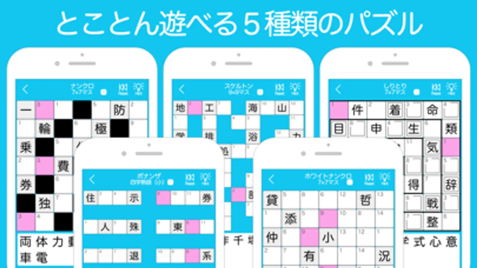 毎日デイリー問題追加中!人気の漢字ナンクロを含む5種類のパズルを楽しめる。暇つぶしや頭の体操に、漢字の勉強にも!