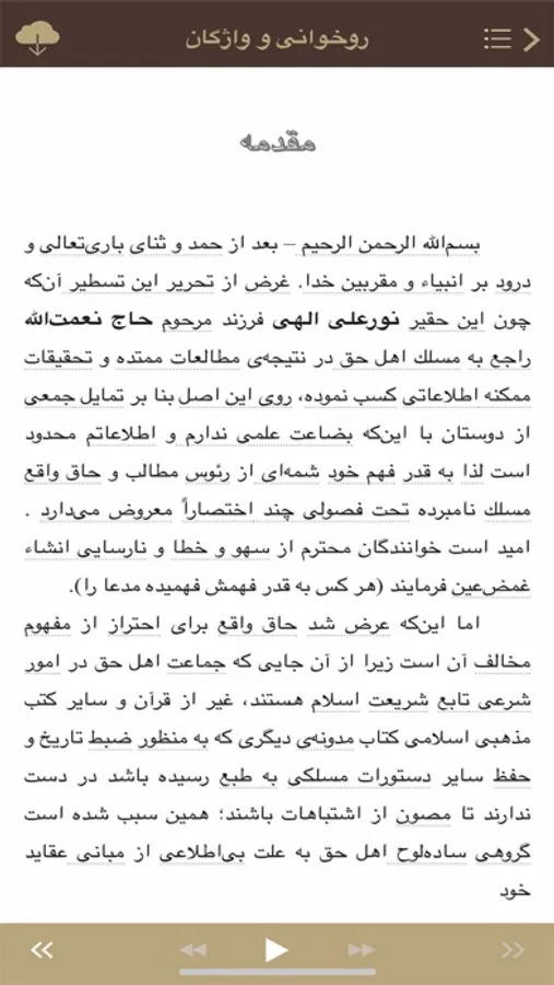 This app is intended to introduce and provide greater familiarity with “Borhan ol-Haqq” (Demonstration of the Truth, 1963), the first published work of Nur Ali Elahi (later Ostad Elahi, 1895-1974). This seminal book presents Ostad Elahi’s comprehensive and meticulous research on the origins, beliefs, principles, and tenets of the mystical order of the Ahl-e Haqq, which had never before been systematically compiled and codified. The supplemental articles and expositions by other researchers and scholars in the field provide essential contextual background and additional analyses of Ostad Elahi’s findings.