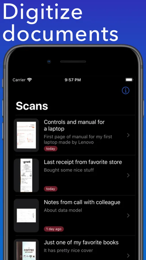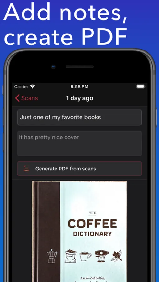 Scan it features OCR which means that scanned text will get recognized and you can quickly make use of it. For example if you scan business card you will get tappable links in results allowing you to make a call, send an email, open Safari or maps depending on the contents.