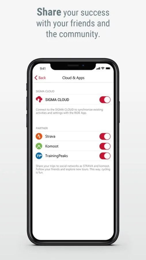 Do you want to be faster, improve your endurance, keep an eye on your stats, or simply enjoy a nice bike tour? The SIGMA RIDE app is an important addition to the SIGMA GPS bike computer and the perfect companion for navigation and for achieving your personal goals! Reach and surpass your training goals. Track your speed, the distance you have travelled, your current and upcoming altitudes, the calories you´ve burned. The SIGMA RIDE app gives you an overview of all of your training, shows you your statistics, and motivates you to pursue a fitter, healthier lifestyle. Share your experiences and successes with friends and family using your social networks.