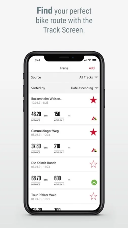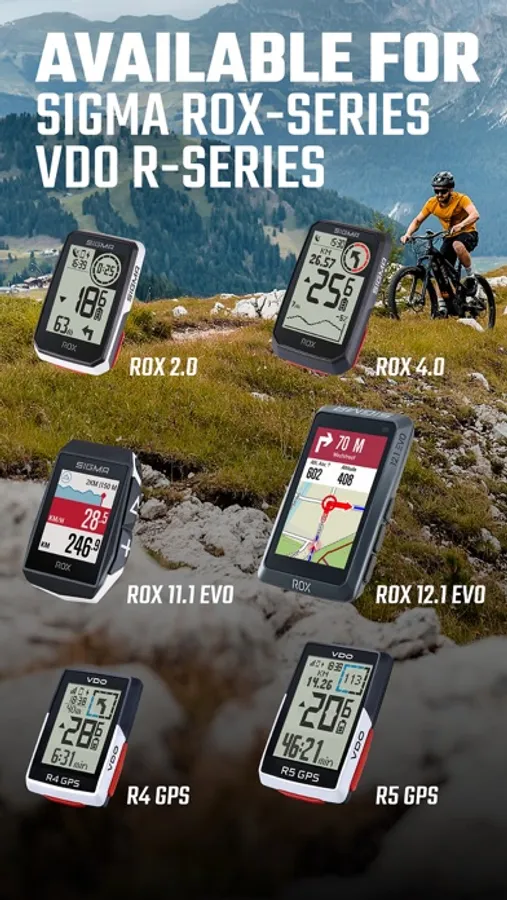 You can also import tracks from the SIGMA DATA CENTER or from portals such as komoot and Strava via the SIGMA RIDE app. The selected track can be started immediately or it can be saved on the bike computer and cycled offline at a later time.