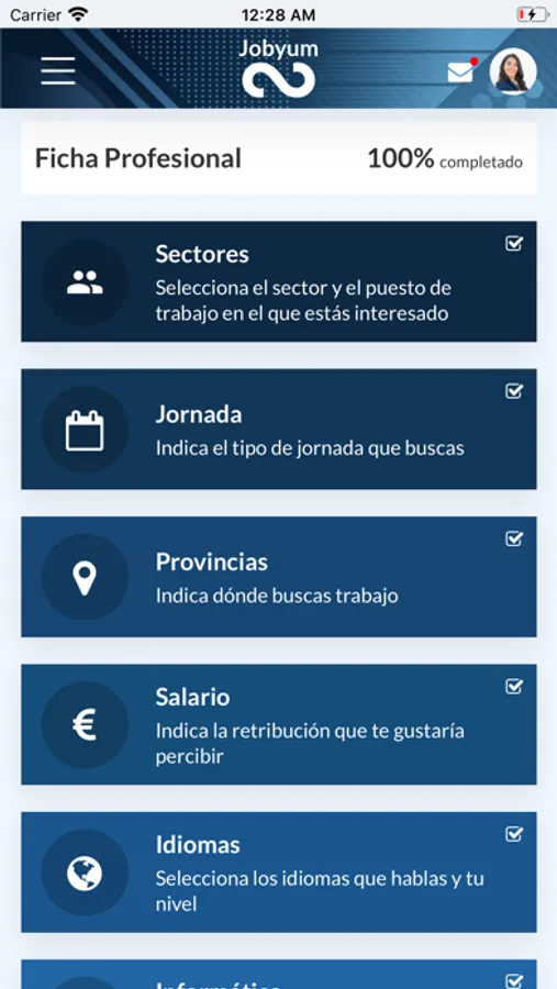 Olvídate de dedicar mucho tiempo a rellenar tu currículum. En Jobyum solo queremos que contestes unas breves preguntas y lo elaboramos por ti. La empresa podrá ver en él todo lo que necesita, de forma sintetizada, sin recibir información que no es de su interés, sin pérdida de tiempo.