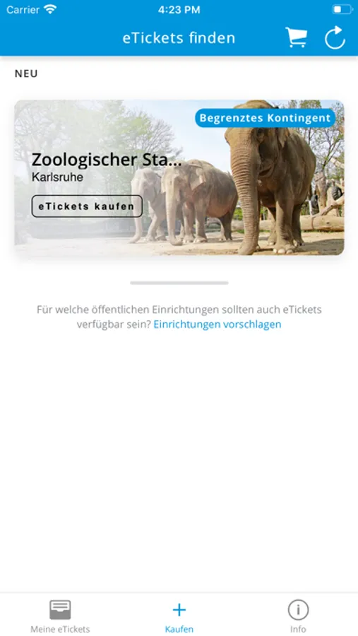 Die vorliegende Version unterstützt aktuell den elektronischen Erwerb von Eintrittskarten für den Karlsruher Zoo. Im Rahmen weiterer Ausbaustufen sollen in den kommenden Versionen der App noch weitere städtische Einrichtungen hinzukommen.