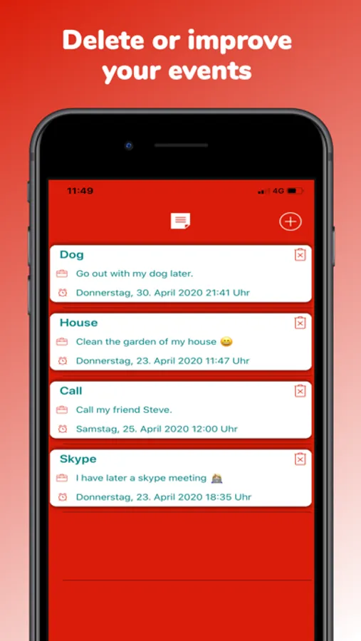 Sie werden von der App, um die eingetragene Uhrzeit, benachrichtigt - Damit Sie keinen Termin mehr verpassen!