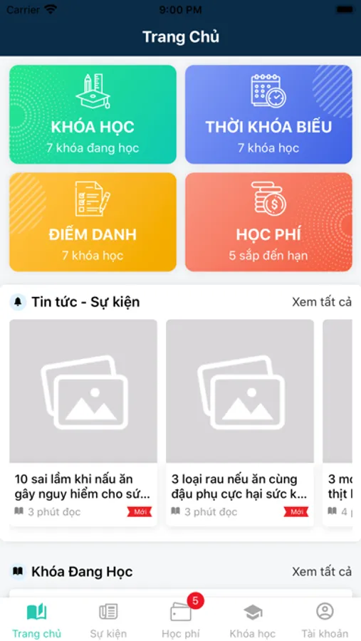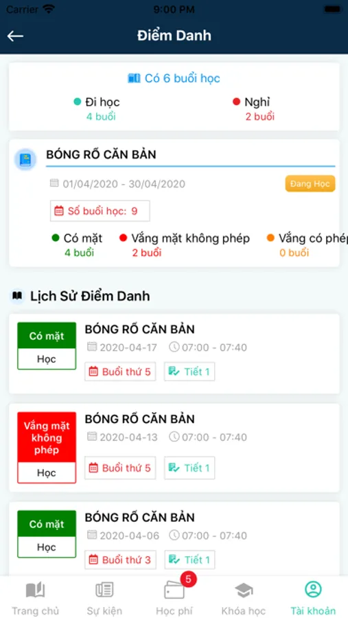 - Học phí và lịch sử thanh toán học phí.