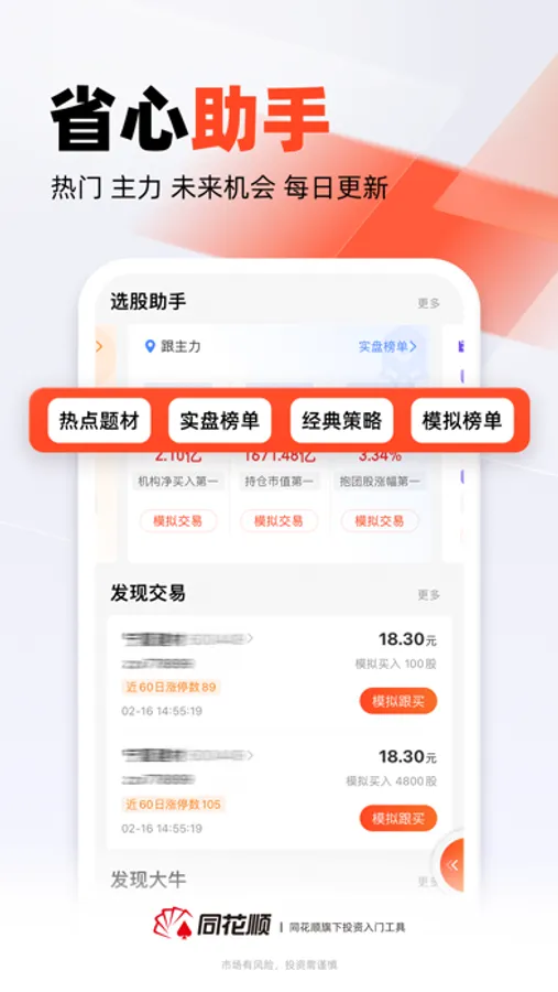 同花顺模拟炒股,由新、老股民都偏爱的『同花顺』精心打造,免费助力投资练习,少走弯路,科学提高~