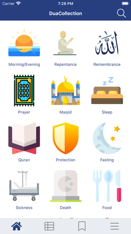 DuaCollection (Hisnul muslim) consists of many authentic dua's for a muslim to supplicate on a daily basis and on special occasions.