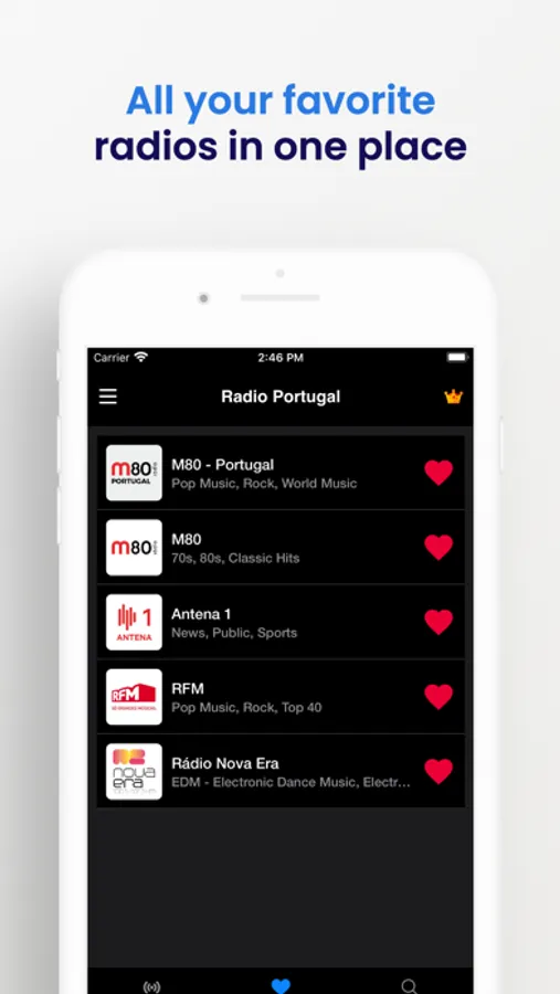 * Listen to radio stations of Portugal.