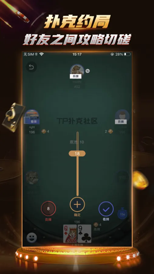 TP扑克社区,打造一个真实高质量的德州扑克社交平台,汇集众多年轻人,体验聊天新社交,还可在游戏中尽情玩牌,接受扑克赛事挑战,获得前所未有的丰厚奖励。全新的聊天室界面,新颖的牌手风格技巧,多元化的比赛模块,公平的娱乐玩法,赶紧来加入我们吧!