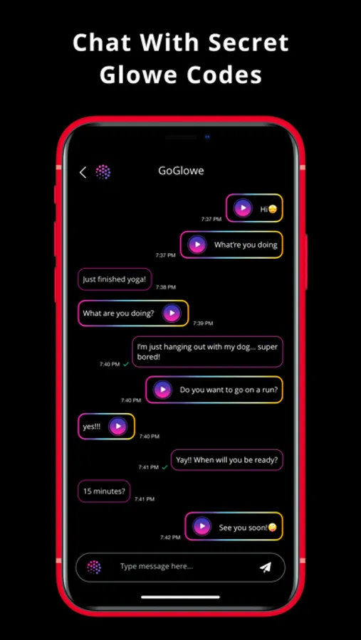 · Your secret Glowe Codes made of light, color, pattern, sound and vibration will take on meaning. Instead of reading a message or notification, you will sense them.