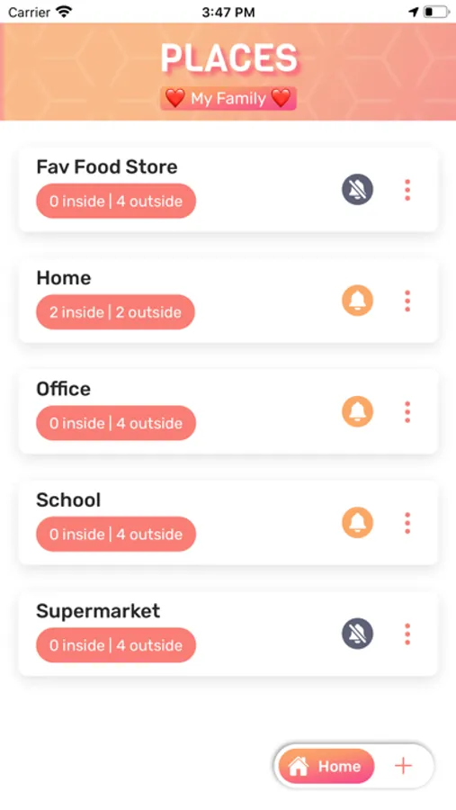 • Add home, workplace, or any important places and receive a notification whenever they enter or exit the Places.