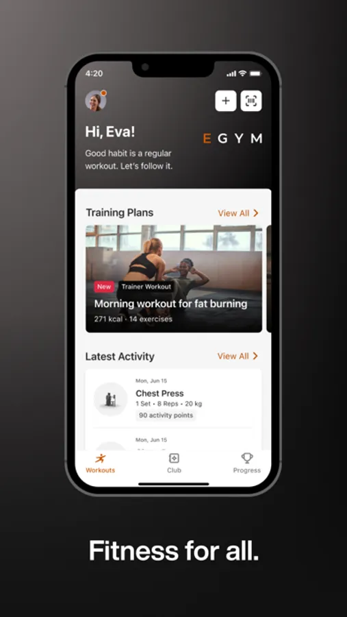 The EGYM For All app uses HealthKit to save your workouts, so they can contribute to your fitness goals and challenges progress.