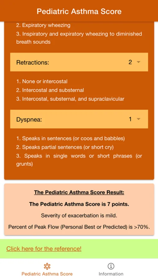 "Pediatric Asthma Severity Score - Asthma Tracker" is medical mobile app designed to help medical practitioner to stratifies asthma attack severity by calculating pediatric asthma score. Based on the result of pediatric asthma score, the severity of asthma attack will be classified by "Pediatric Asthma Severity Score - Asthma Tracker" app into three categories, namely mild asthma attack, moderate asthma attack, and severe asthma attack.