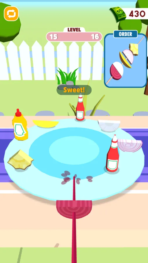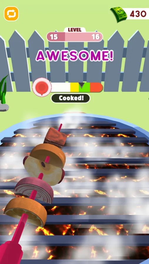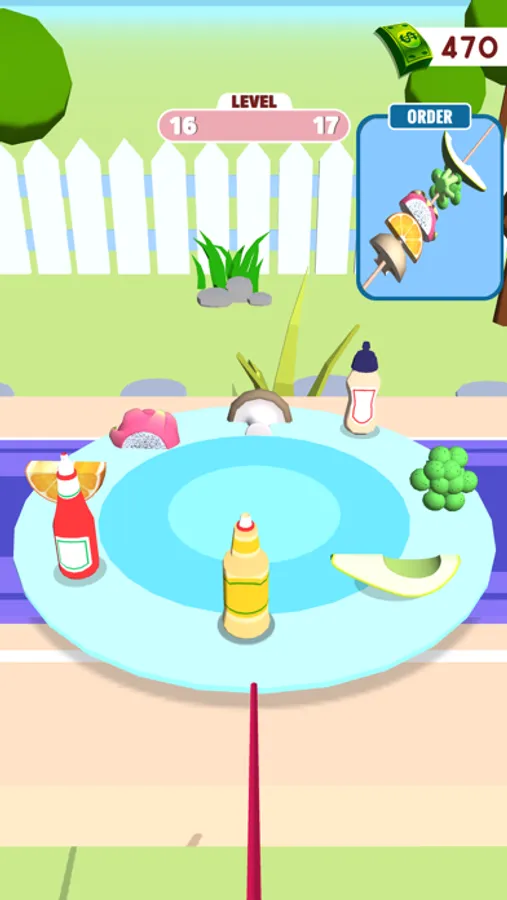 Tap to poke the desired food item as per the target order, grill it on bbq, plate it and serve it to your friends.