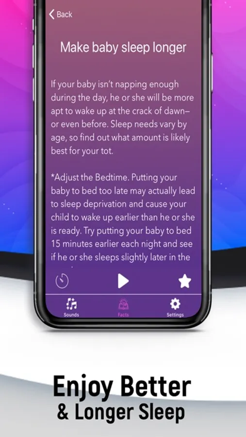 Large selection of white noise, sounds of nature and lullabies to calm your baby. Get to sleep quickly and sleep well through the night.