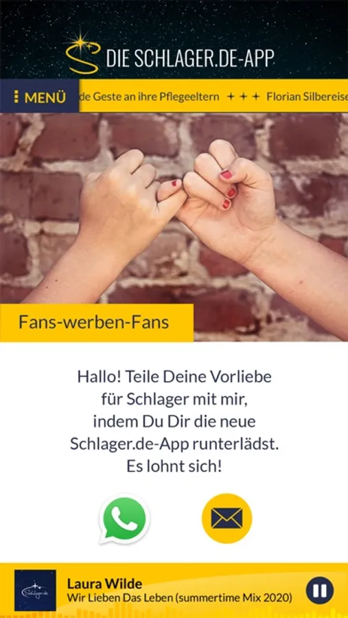 Mit dem Download akzeptierst Du unsere Allgemeinen Geschäftsbedingungen (https://www.schlager.de/agb-app/)