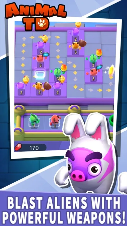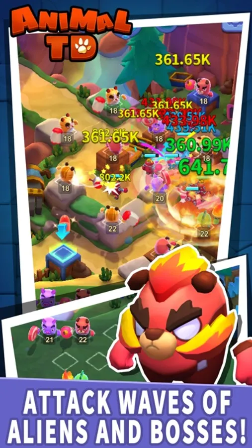 -Rich and unique scenes are waiting for you to explore and challenge (islands, forests, ruins ... Each map has heroic animals to defend the line of defense)