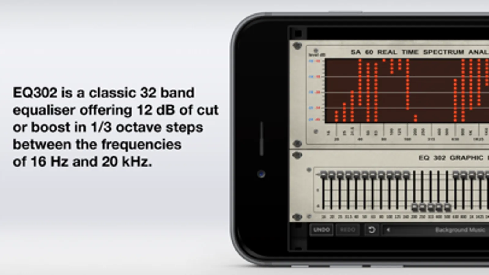 EQ302 is a 32 band equaliser offering 12 dB of cut or boost in 1/3 octave steps between the frequencies of 16 Hz and 20 kHz.