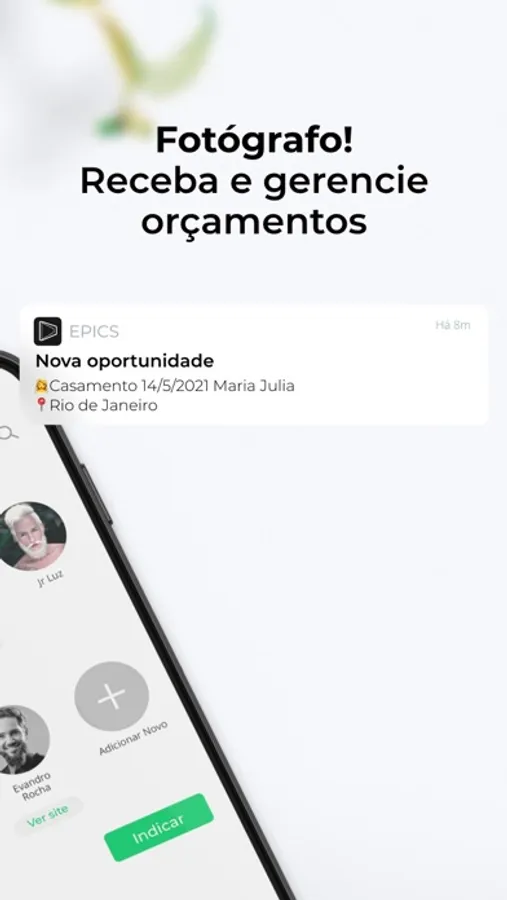 O Epics App é um aplicativo que permite que o fotógrafo venda mais, gerencie suas propostas, crie orçamentos e mantenha o controle dos clientes.