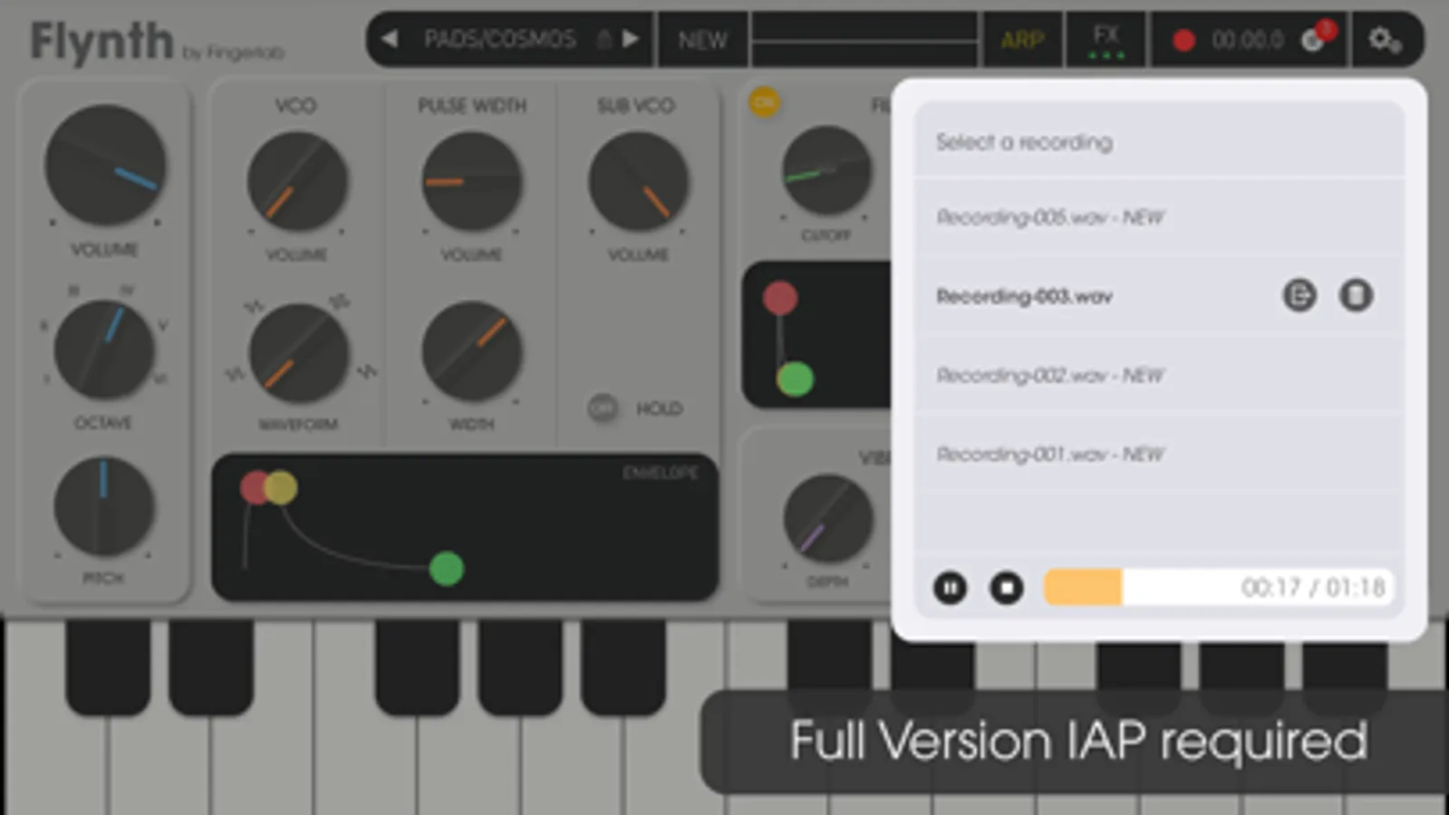 Also you can use your favorite keyboard with MIDI, or load Flynth AudioUnit in your favorite DAW.