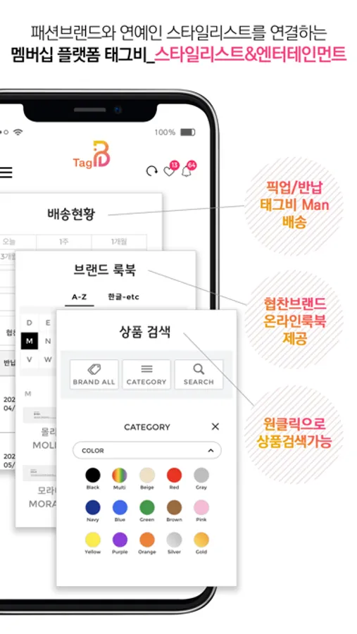 Tag B는 패션브랜드[B]와 국내외스타[S]를 연결하여 별도의 광고비용없이 방송의상 협찬 및 제작지원을 진행하는 국내유일한 스타패션마케팅 플랫폼입니다