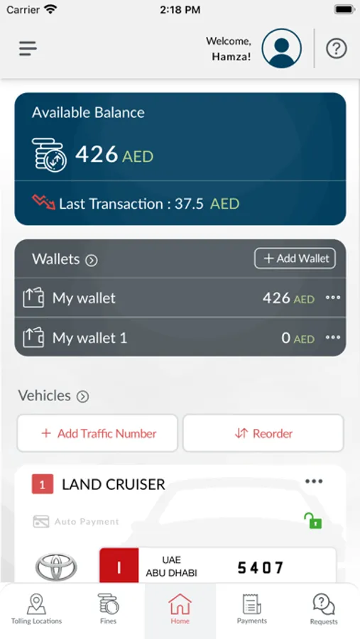 يوفر تطبيق نظام التعرفة المرورية لإمارة أبوظبي درب للمستخدم إمكانية إدارة الحساب الخاص به من خلال مجموعة من الخدمات والميزات التي تتيح له متابعة حركات مركباته عند استخدام بوابات التعرفة المرورية من خلال تطبيق الهاتف الذكي مباشرةً دون الحاجة للرجوع إلى الموقع الالكتروني.