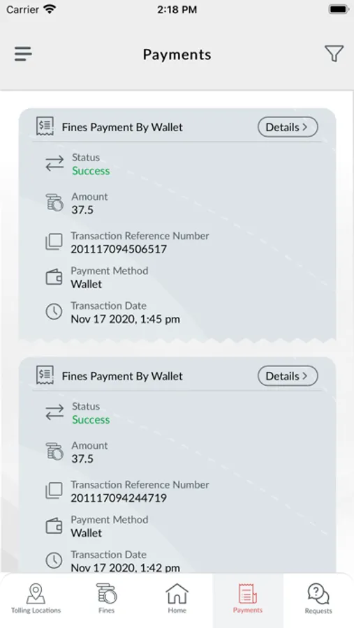 - خدمة عرض احصائيات حركات المرور لمركباته من البوابات والرسوم المترتبة عليها.