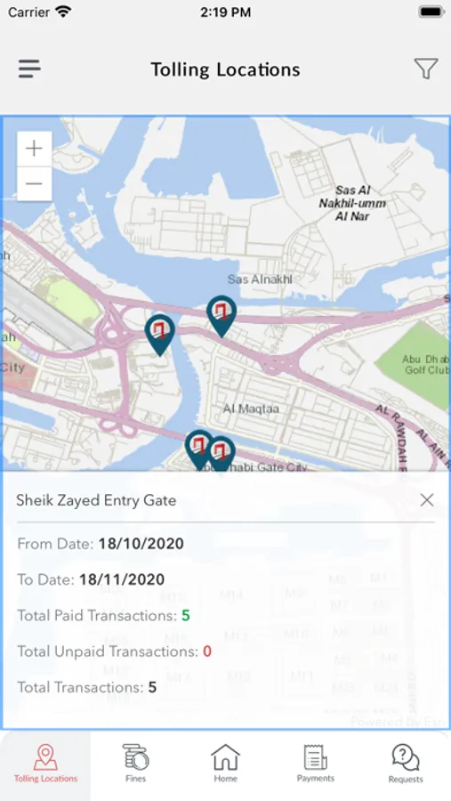 - إمكانية الاطلاع على أماكن تواجد بوابات التعرفة المرورية على الخارطة.