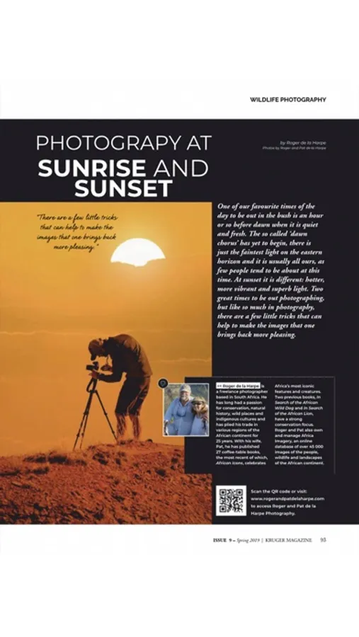 The KRUGER MAGAZINE’s impressively broad editorial mix will offer engaging reading and satisfy not only the avid wildlife lover, adventurer, passionate photographer and domestic and international tourist, but also conservationists, researchers, and armchair travellers, amongst others.
