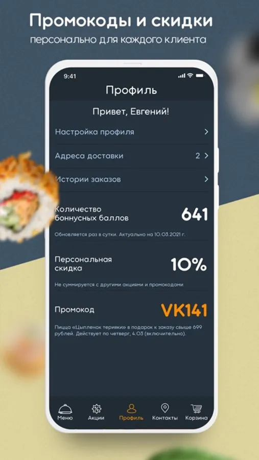 Мобильное приложение позволяет сделать заказ еды домой или в офис, в реальном времени. Доставим ваш заказ до двери как можно быстрее.