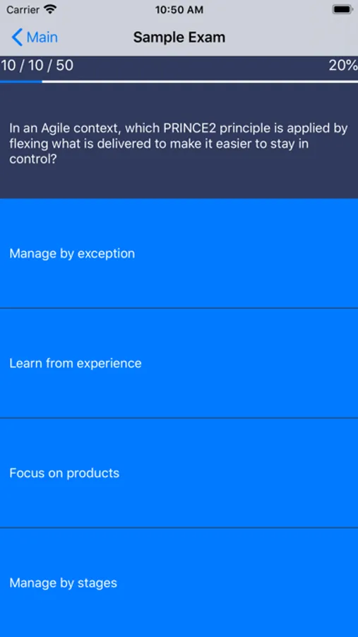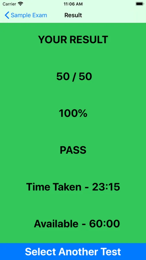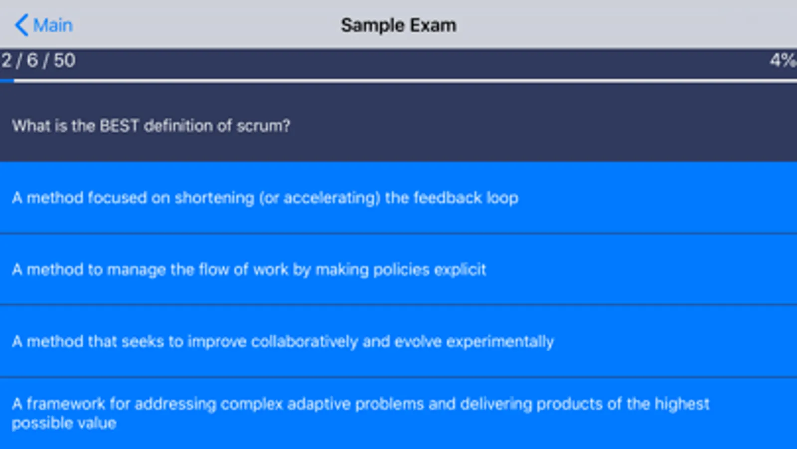 1 hour to complete 50 sample exam questions selected according to the official syllabus.