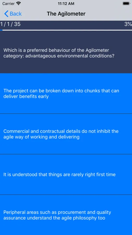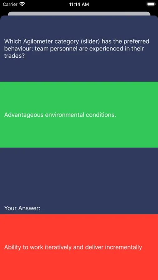 If you get a question wrong in a topic set the app will display the question along with the correct answer and your (incorrect) answer.