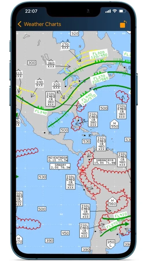 Weather Charts - Available for Offline use with one click. Available Charts: