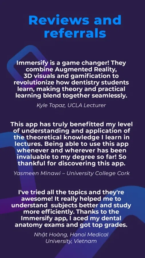 Immersify is the ultimate study tool for dentistry and nursing students, designed to bridge the gap between theory and practice through: