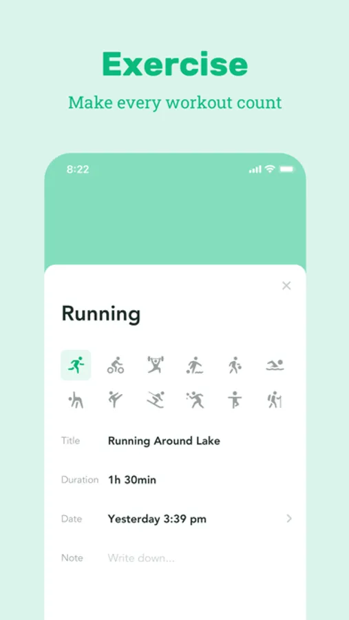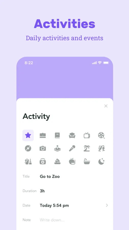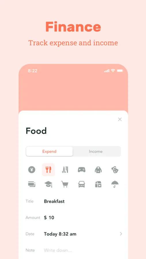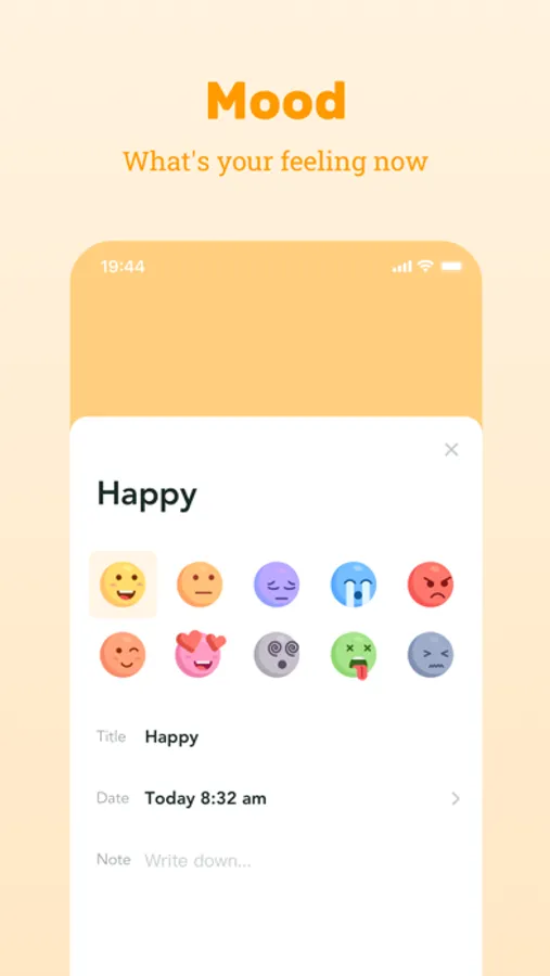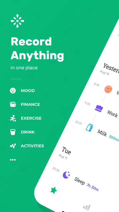 - Record mood, expenditure and income, exercise, drinking water and daily activities at any time.